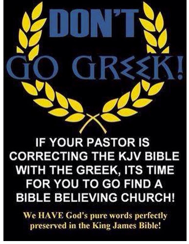 If your pastor or Bible teacher starts to "correct" your King James Bible with his schoolboy Greek to tell you what it REALLY SAYS, get yourself a different pastor.